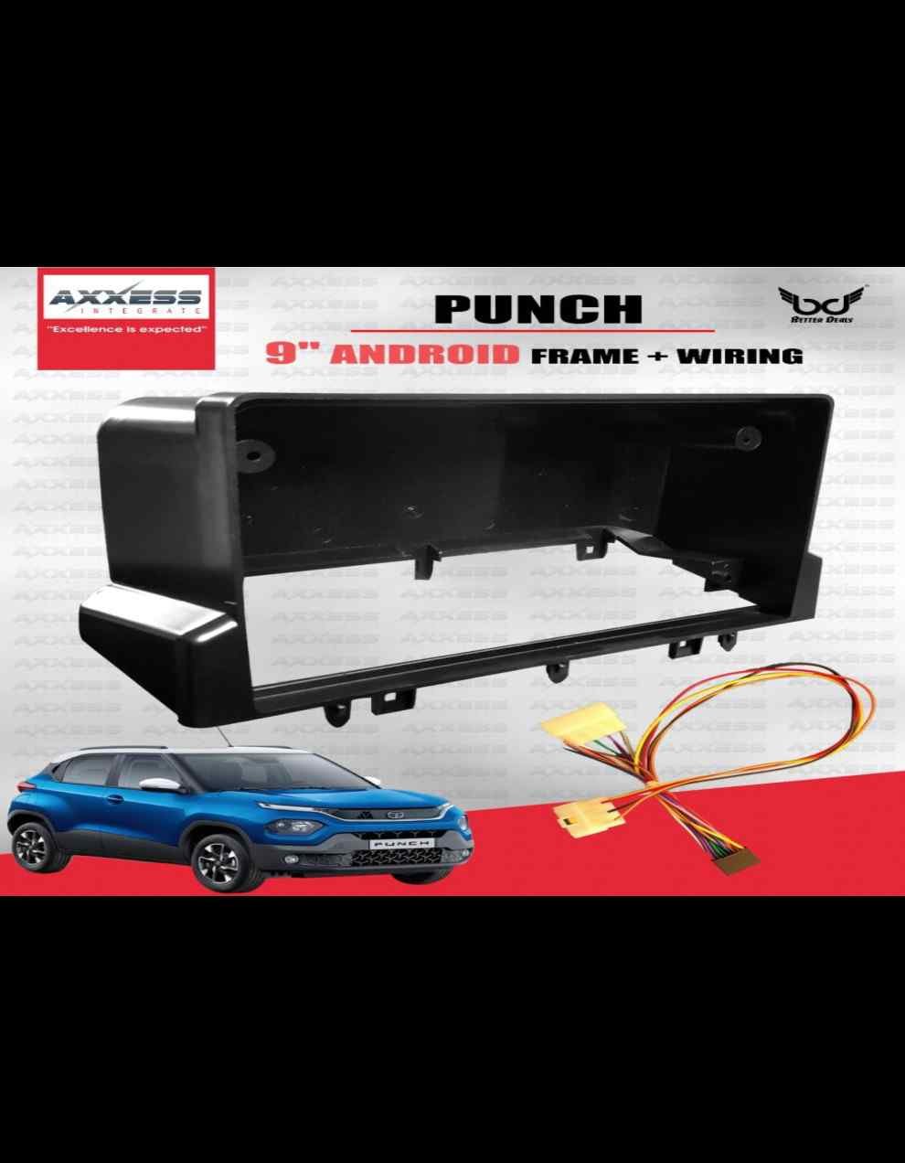 Tata punch 9" Stereo frame with wiring BLACK