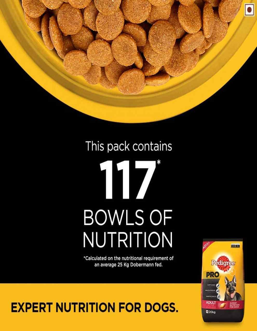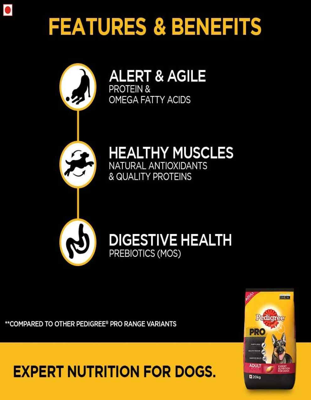 Pedigree PRO Expert Nutrition Active Adult Large Breed Dog (18 Months Onwards) Dry Dog Food 20 Kg Pack