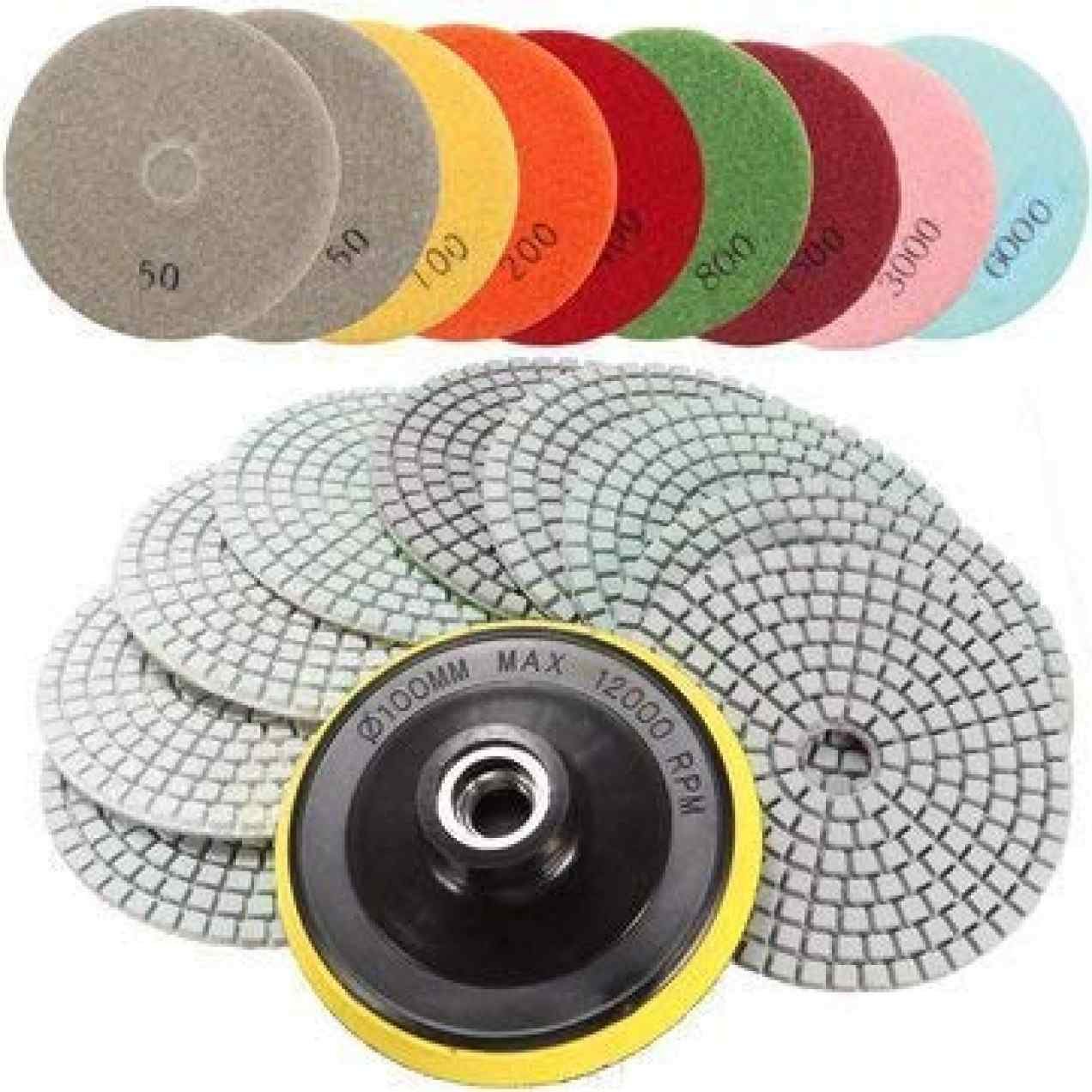 UMG(ultimate machinery & goods)® 10Pcs 4 Inch 50 to 5000 Grit Diamond Polishing Pads for Granite Marble Polish